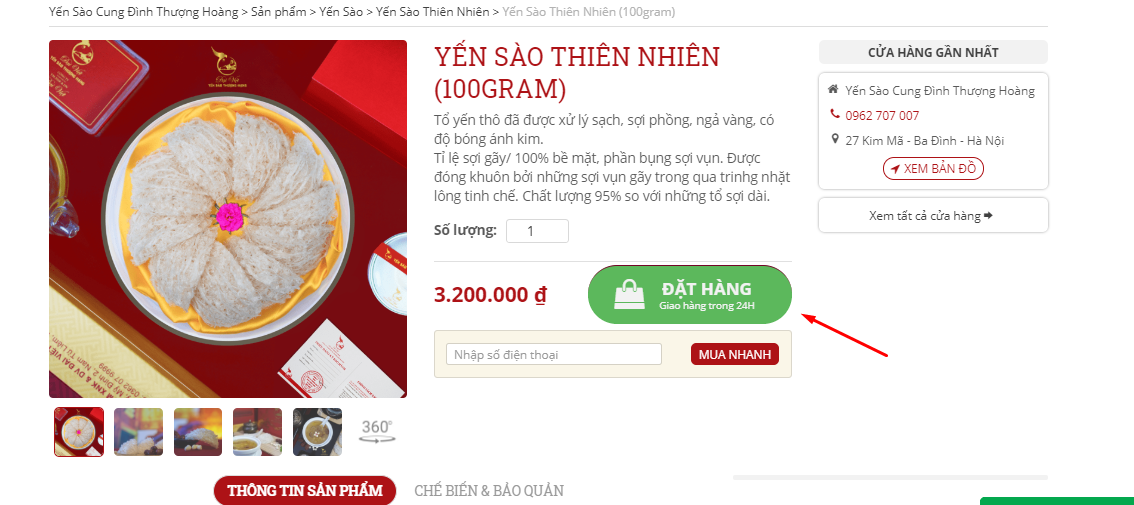 Cách 2: Đặt mua hàng online trên website yensaocungdinhthuonghoang.vn